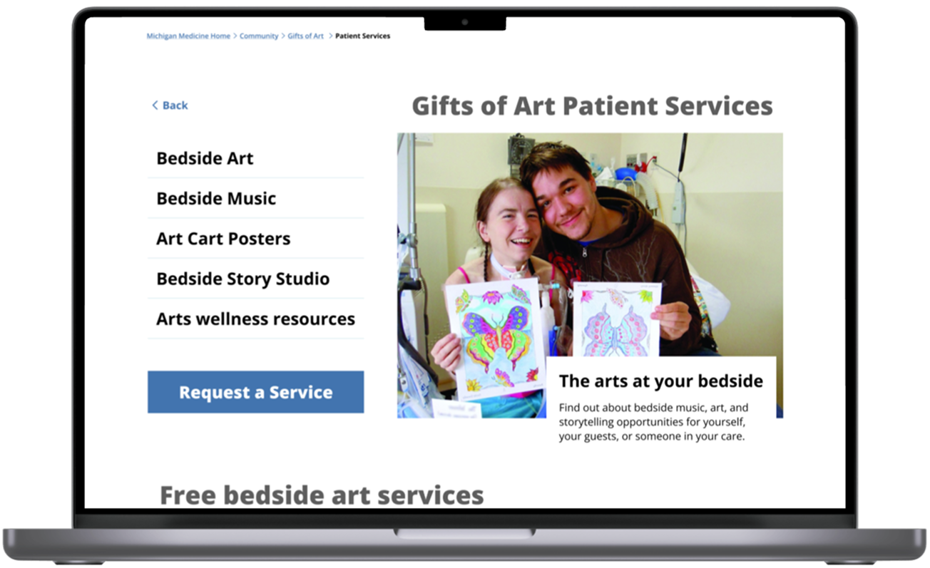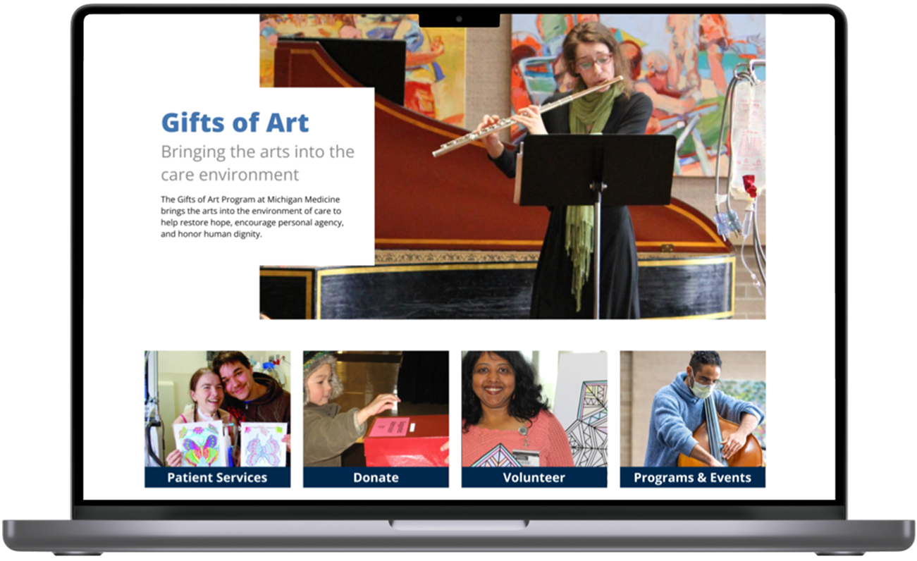 Because Gifts of Art functions as a suborganization within Michigan Medicine, we had to coordinate with multiple stakeholder groups—including Communications, Patient Coordination, Public Relations, and the Gifts of Art team itself.