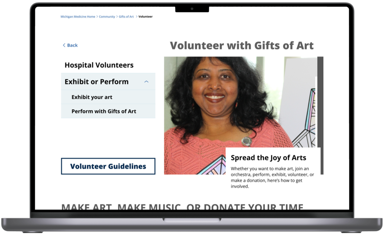Our redesign clarified navigation for caregivers and volunteers while improving overall findability within Michigan Medicine’s larger ecosystem.