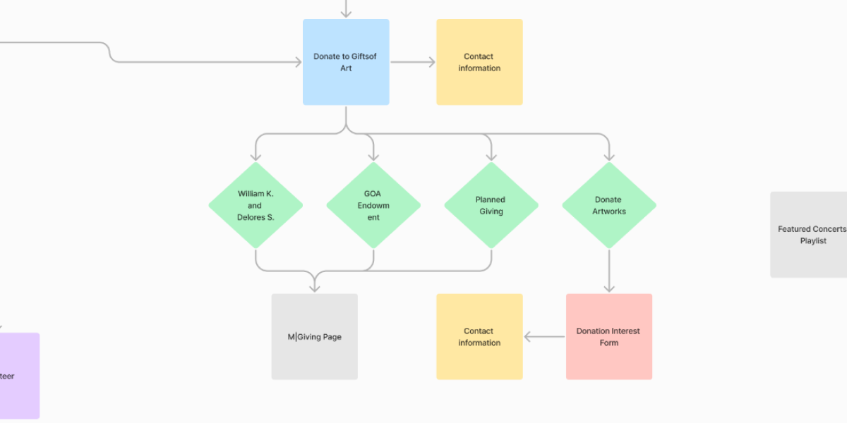 The restructured site architecture and enhanced navigation make Gifts of Art easier to locate within the broader Michigan Medicine ecosystem. The newly defined user flows guide each user group through key tasks with clear starting and ending points. These changes reduce confusion, improve task completion rates, and foster more positive interactions with the program.